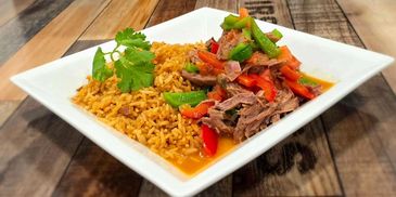 A hearty, slow-simmered beef stew inspired by the colors of the Mexican flag. Tender shredded beef is cooked with fresh tomatoes, onions, and green chiles, then finished with cilantro for a rich, flavorful broth