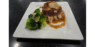Hand-formed beef chop steak, seasoned with our chef’s signature blend and grilled to lock in flavor. Finished with savory sautéed onions, mushrooms and rich brown gravy